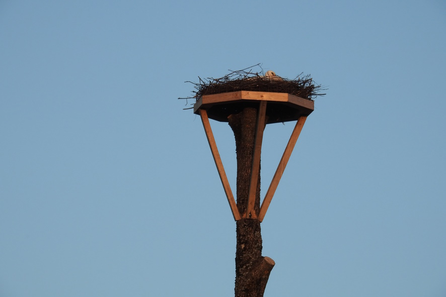 | Foto: Erster Weißstorch in Freistadt am 28.02.2026. © H. Kurz | Foto: Das Paar in Riedau/Zell ist komplett. © B. Rosenberger | Foto: Spezialkonstruktion von treetastic wurde angenommen. © H. Kurz |