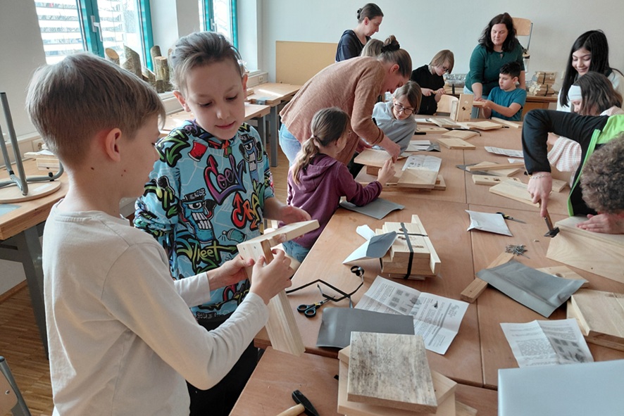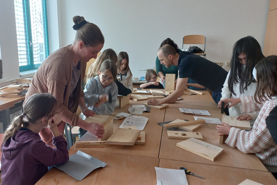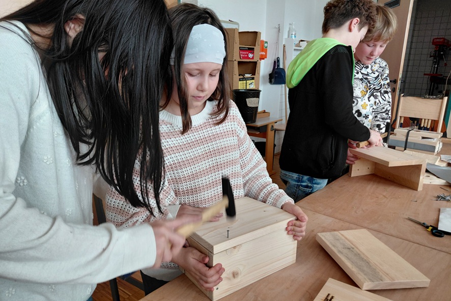 Fleißig gezimmert und gehämmert wurde Anfang März von den Kindern der 4i-Klasse der Johann-Eisterer-Landesschule in Peuerbach: Im Rahmen des Grünen Klassenzimmers vom Naturschutzbund Oberösterreich wurden Nisthilfen für Blaumeisen, Kohlmeisen und andere Singvögel hergestellt.