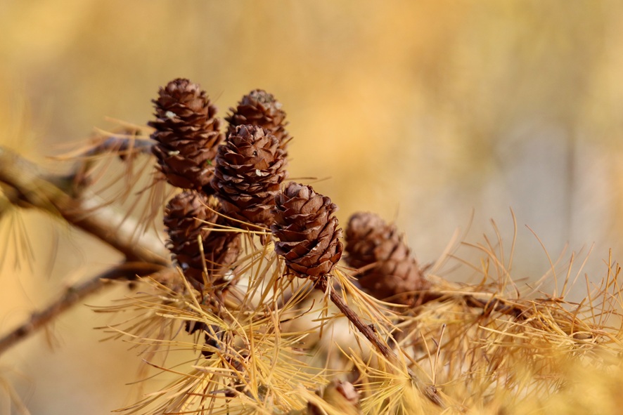 Fotos: Europäische Lärche in Herbstfärbung; © A. Meyer/Pixabay Tannehäher; © GC/Pixabay Igel in Laubhaufen; © J. Kropfberger